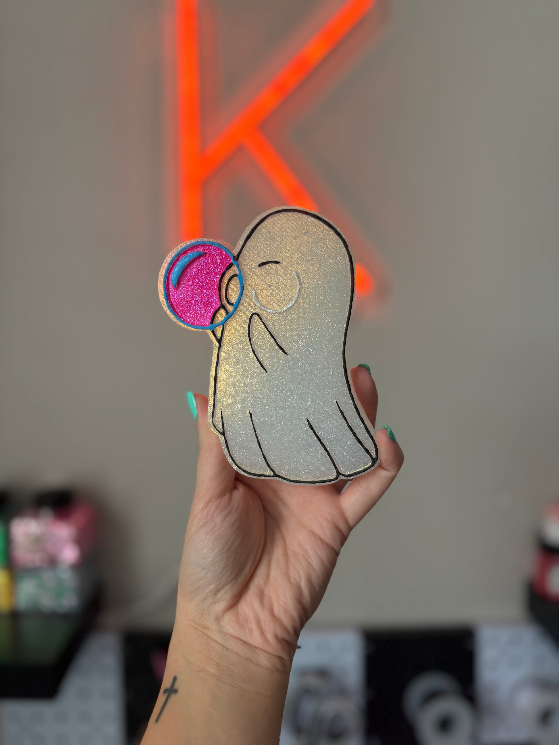Ghostie blowing a bubble